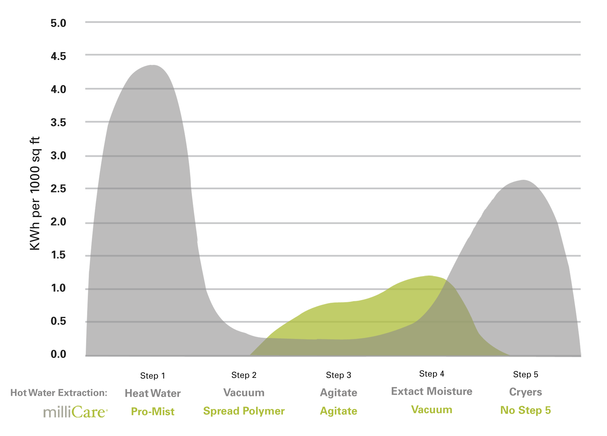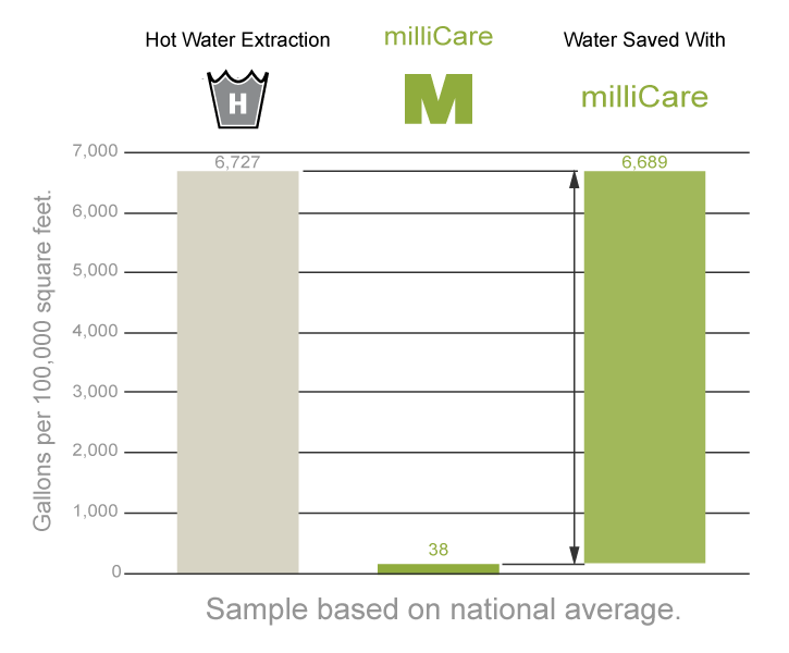 When you think about your company’s environmental impact, carpet maintenance may not be your first consideration. Here are a few facts that my make you reconsider. Hot-water extraction methods use 319% more energy to clean the same square footage as Millicare. That translates into 77% higher emissions.